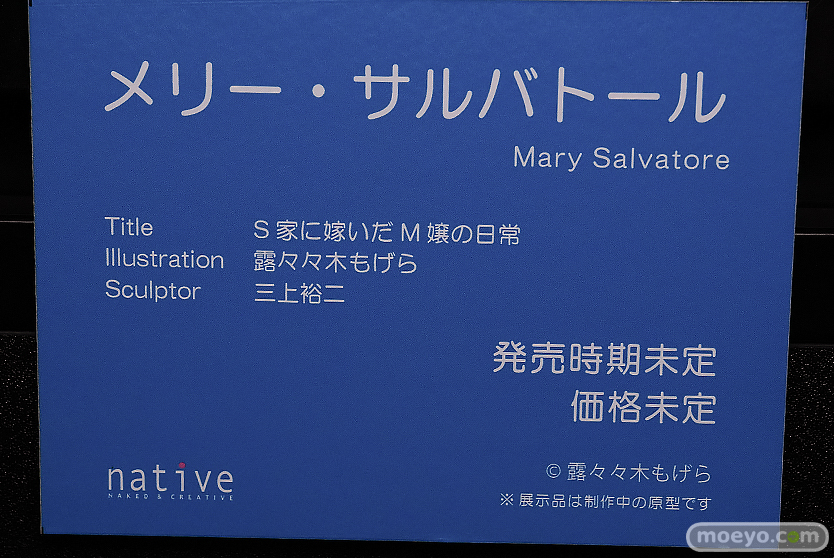 ネイティブ「S家に嫁いだM嬢の日常 メリー・サルバトール」(製作中原型) *掲載の展示アイテムは原則的に監修中や製作中のものとなります。 実際の商品とは若干異なる場合がございますので、予めご了承ください。 撮影:いつもの友人/もんぷち。 文:もんぷち。 関連 ■「第11回 ネイティブグループ合同展示会(エロホビ)」の記事一覧 ■ネイティブ ©露々々木もげら