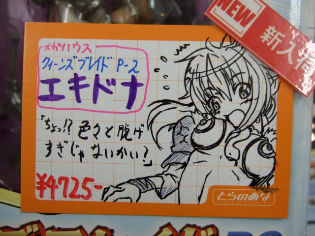 アキバでは1月29日に発売された、どちらも下半身丸出し可能なメガハウス エクセレントモデルCORE クイーンズブレイド P-2「歴戦の傭兵エキドナ」と「鋼鉄姫ユーミル」ですが、30日にはさらに複数のショップでも入荷を確認することが出来ました。ただし、ユーミルの方の店頭販売を確認できたのはキャラシティとイエサブG-shop2号店のみで、他の確認したショップでは完売。