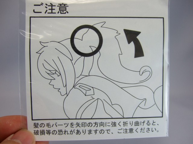 なお、付属していた注意イラストによると、ポニテの根元部分は、負荷をかけると破損しやすい部分なので注意とのことでした。