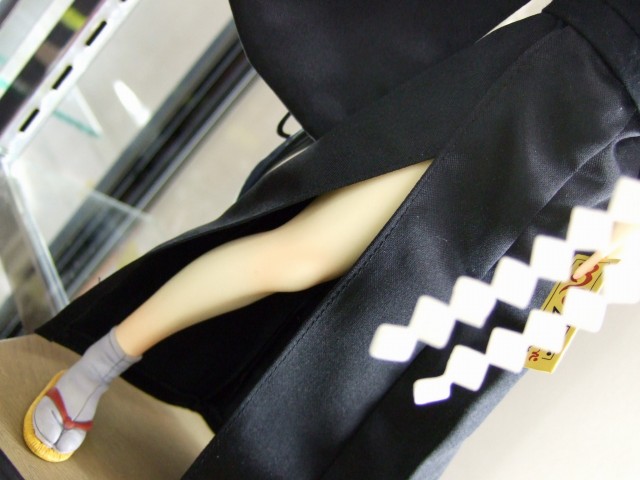 そこでは、1/7スケールで、全高約250mmと、いわゆる27cmドールに近いサイズであることからか、一度キャストオフしたサンプルに、27cmドール用の、ブリーチみたいな黒い和服や、ボンテージ衣装に着せ替えられたサンプルが展示されていました。