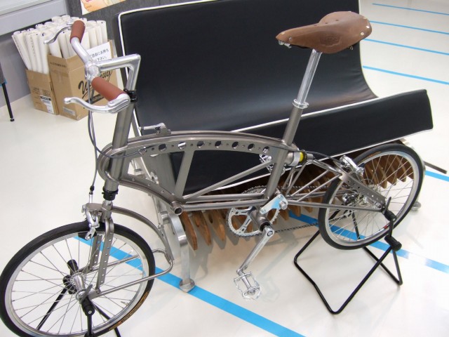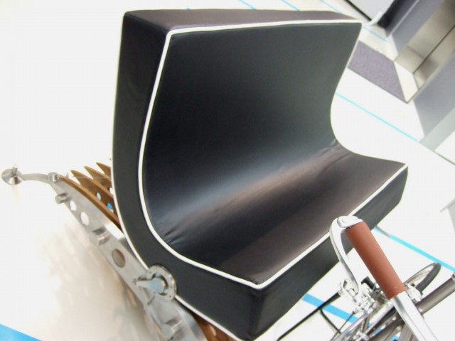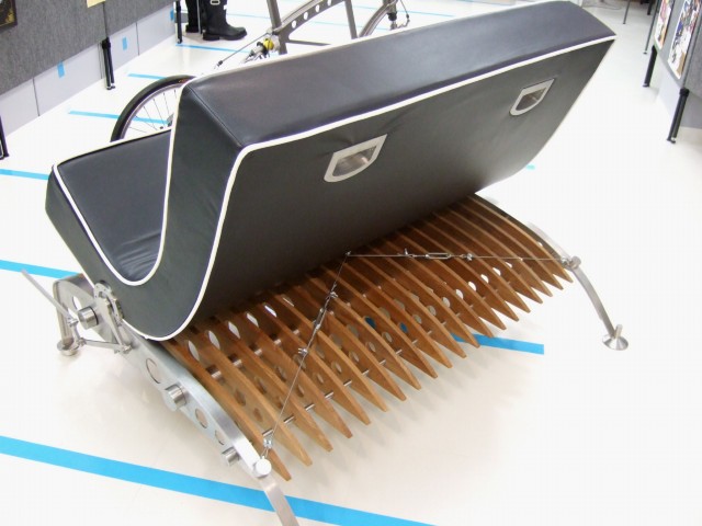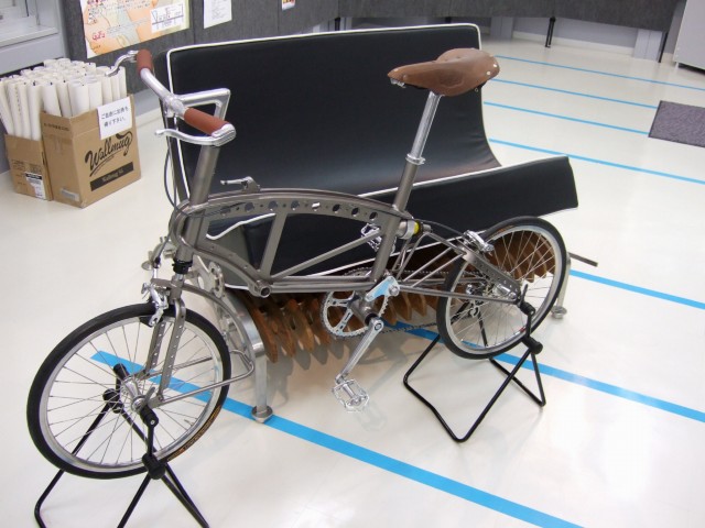 展示されていたものの中でも、特に目立っていたのがこの、フロア中央におかれていた村田蓮爾氏デザインの自転車とソファの実物の展示。