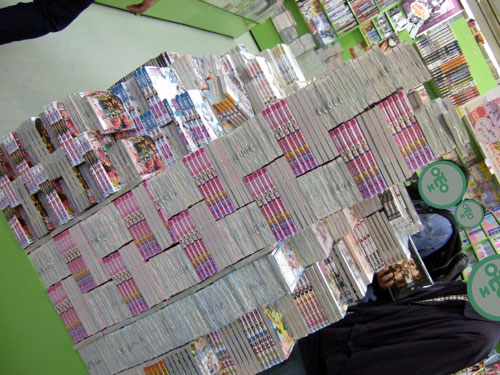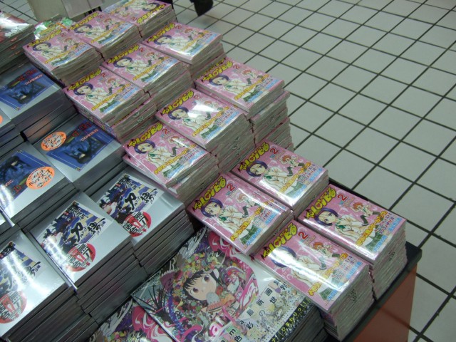 メロンブックスでは、成人男性の身長くらいの高さまで積み上げていました。