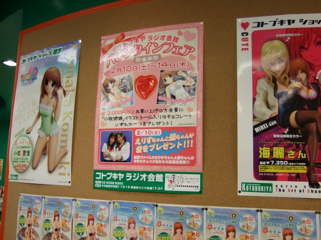 ほか、ポスターや、2F掲示板にはられていたPOPによると、コトブキヤラジオ会館には、開催初日の2月10日(土)に、脳殺コスプレ衣装で1日店長もつとめられていた、「探偵ファイル」の桜井えりすさんと夜咲蘭さんが来られて、手作りチョコが当たる抽選会を開催するみたいです。