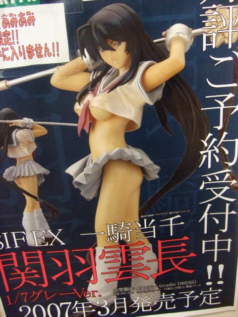 掲示されていた、やまとSIF EX 一騎当千 関羽雲長 1/7 流通限定クリアグレーVer.」(AM)のPOP。