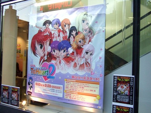 ヤマギワソフト本店1Fのエスカレーター付近の外壁に、OVA「OVA ToHeart2」の第1巻」(AA)の告知用の巨大POPの掲示が開始していました。