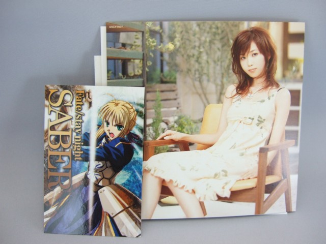会いたいよ。/君との明日」(AA)のジャケット表裏と、表ジャケット裏面と同梱のセイバーのトレカ。