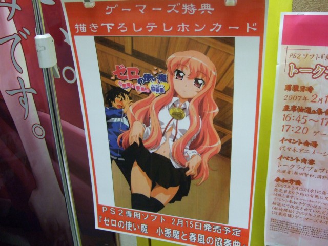 PS2「ゼロの使い魔 小悪魔と春風の協奏曲(限定版)」(AA)が2月15日に発売されますが、ゲーマーズ本店では、オリジナル購入特典の描き下ろしテレカの絵柄の公開が開始しています。特典の絵柄では、ルイズがへそだしでさらにミニスカートを、ぱんちゅ見えるか見えないかの限界値までたくし上げているもの。微妙に尻肉が見えているのがオメガエロスw ( ゚∀゚)=3