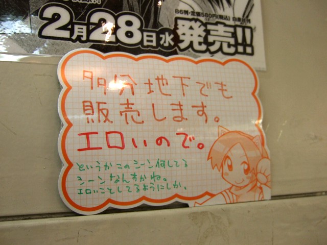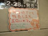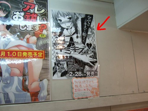 とらのあな1号店の大人向け売場のB1でも販売予定みたいで、B1〜1F間の階段壁側に「すべてはこのキスから始まった!」とかかれた告知POPが掲示されていました。