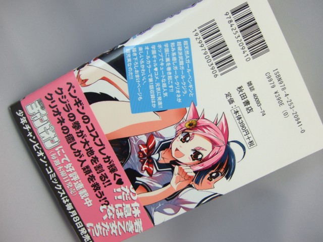 オビには「超天然Aガール ペンギン(14歳)登場♥ ここだけの話 話題になってるですよ♥ 美少女たちの燃えて萌える学園生活がギッシリ満載!」「ペンギンのコスプレが輝く♥ クジラの拳が大地を割る!! クリオネの癒しが人類を救う!? 若き乙女たちに休息はないのだ!!」とかかれていました。