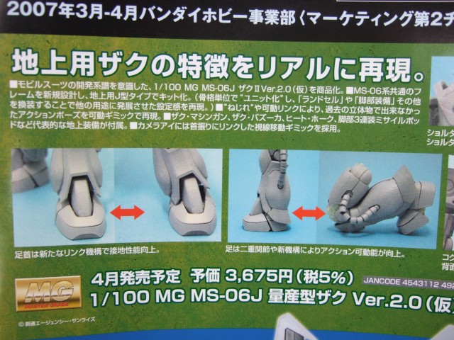 この「1/100 MG MS-06J 量産型ザク Ver.2.0」(AA)の詳細情報はこのパンフが初公開みたいです。