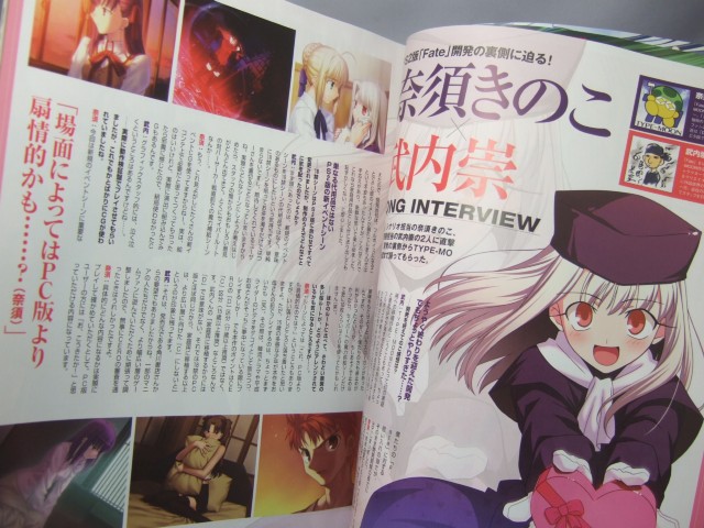 「場面によってはPC版より扇情的かも・・・?」という奈須きのこ氏のコメント他、武内崇氏&奈須きのこ氏のインタビューが掲載されています。