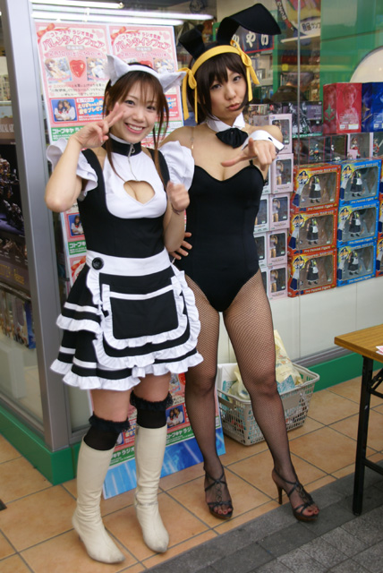 胸元の開いたメイド服を着ているのがの桜井えりすさんで、ハルヒバニーのコスプレをしていたのが夜咲蘭さん。