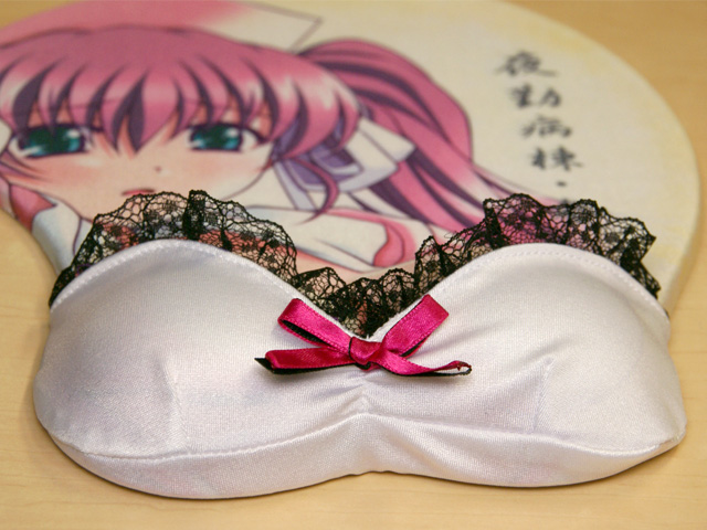 まあ、おっぱいマウスパッドって、使っていると谷間の部分が黒くなってきちゃったりしちゃうので、このブラジャーである程度そういった汚れを防ぐという効果もあるかな?w