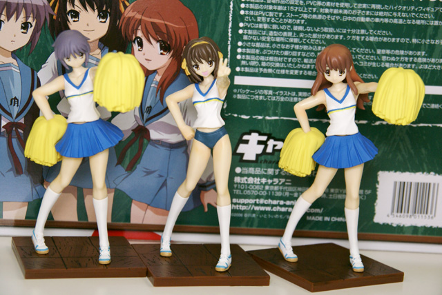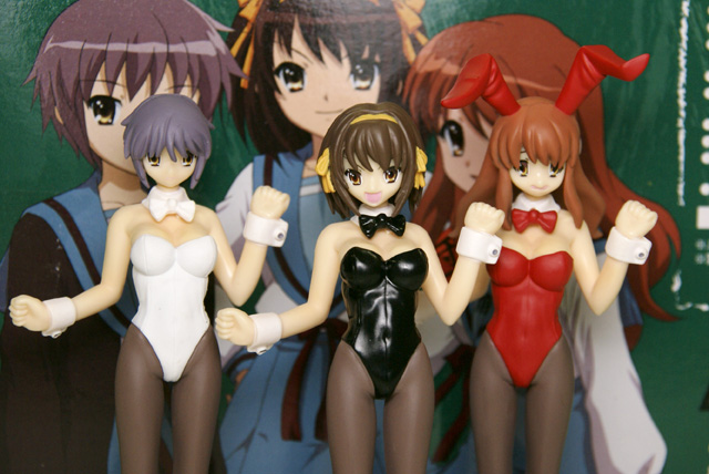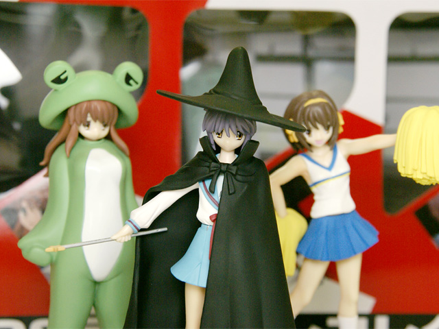 キャラアニ「涼宮ハルヒの憂鬱 SOS団コスプレコレクション 」のサンプルレビューです。キャラアニさんのご好意により、撮影させて頂くことが出来ました!これは、ワンダーフェスティバル 2007冬のキャラアニブースにて、同サイズのみくる白バニーフィギュア、オリジナルテレカが付属する、着せ替えフィギュア3体(ハルヒ、長門、みくる)セット。なかなか遊べますよこれw