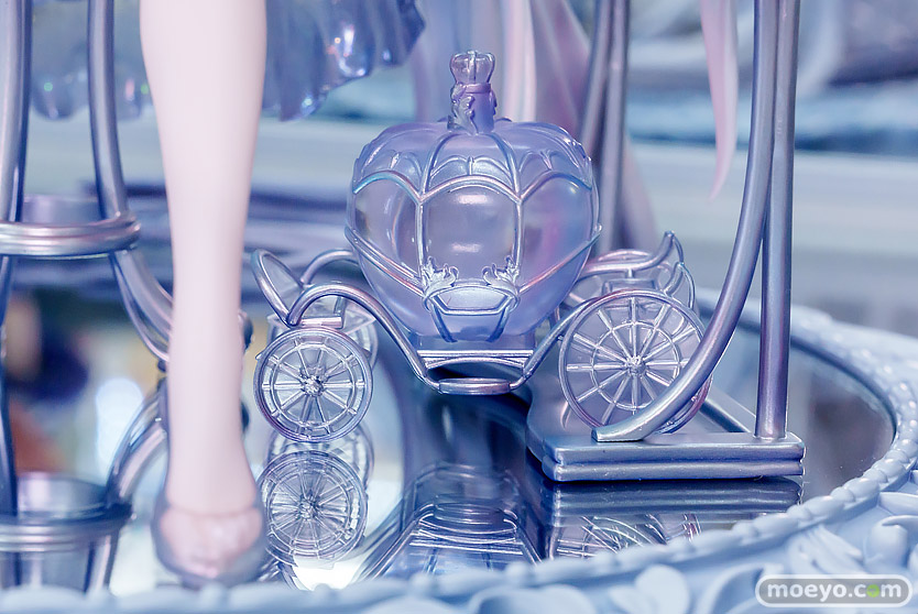 華やかなドレスに身を包んだシンデレラが、鏡台座の上で優雅に座る姿を再現しました。スカートは丁寧な塗装により、光沢や質感を表現。ロングヘアは自然に垂れ下がり、フィギュア独特の幻惑的な雰囲気を表現しています。特にガラスの靴は、夢幻的な輝きを放つだけでなく、靴越しに足の繊細なラインまで見ることができ、極上の美しさを際立たせています。靴は着脱可能で、お好みの姿で鑑賞することができます。