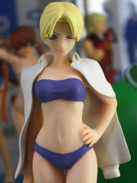 ソフマップ本店にて、メガハウス「プレミアムヒロインズ SNK BEACH VOLLEY ギャルズアタック」(AA)のサンプル展示が開始しています。これは、宮沢模型新作展示会のメガハウスブースでも展示されていた、SNKプレイモアのiモード向けサイト「SNK WORLD-i」で配信されたゲーム「SNK BEACH VOLLEY ギャルズアタック」のキャラをトレフィにしたもの。シェルミーがエロすぎw