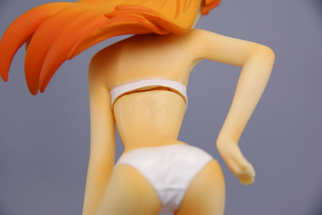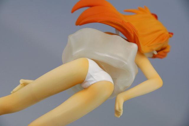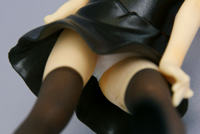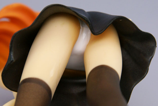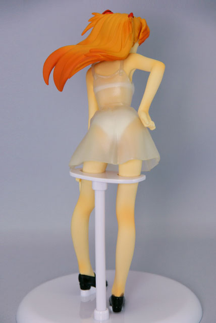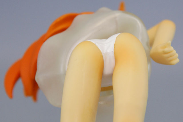 外すのは怖いけど、どうしてもヒップラインを堪能したい方は、幸いワンピース部分がかなり柔らか素材のため、ドライヤーなどで暖めた直後に、ごらんのようにスカートめくった状態にしてしまえば、比較的簡単に堪能できますよ〜w