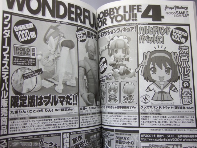 2007年2月25日(日曜日)に開催される「ワンダーフェスティバル 2007冬」の入場券もかねたガイドブックが、アキバでは15日に発売となりました。「ワンダーフェスティバル」とは、公式の「ガレージキット”そしてワンダーフェスティバルとは何か?」によると「ガレージキットシーンの最前線」「ガレージキットの聖域(サンクチュアリ)」という、海洋堂主催のフィギュア・ガレキの総合イベント。