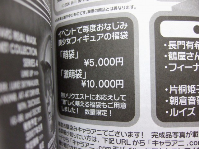キャラアニの中の人のお話だと、激萌袋のほうは、かなりのレアアイテムを確保しているみたいで、「ハズレはナイけど、アタリは激しい」という感じになっているみたいです。