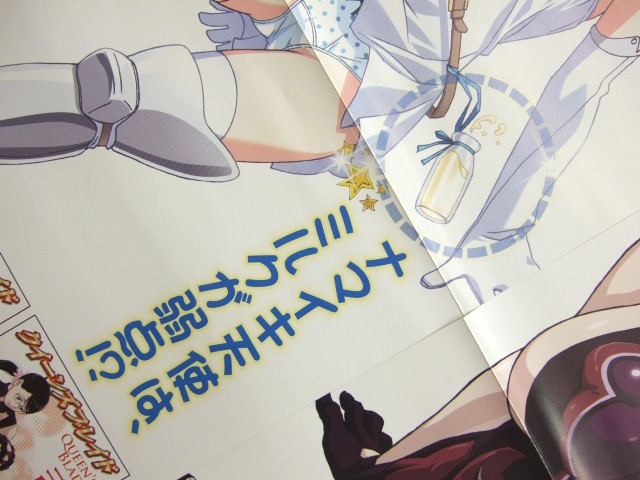 とらのあな本店5Fにて、ホビージャパンのクイーンズブレイド「光明の天使ナナエル」(AA)と「武器屋カトレア」(AA)の2種のPOPの掲示が開始していました。ナナエルのPOPには今回(おそらく)初だしとなるイラストが用いられいます。POPによると「ナマイキ天使は、ミルクが弱点!?」とされ、HJゲームブログでは、こぼれたミルクが太ももを伝うイラストなどが掲載されていました。