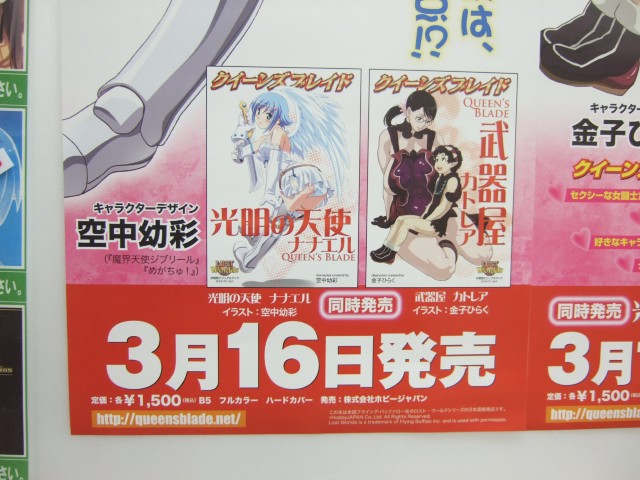 とらのあな本店5Fにて、ホビージャパンのクイーンズブレイド「光明の天使ナナエル」(AA)と「武器屋カトレア」(AA)の2種のPOPの掲示が開始していました。