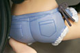水着はデニムタイプのもので、ビキニなどより露出が少なめですが、左右には大きなスリットがついていて、なかなかきわどい感じになっていますw