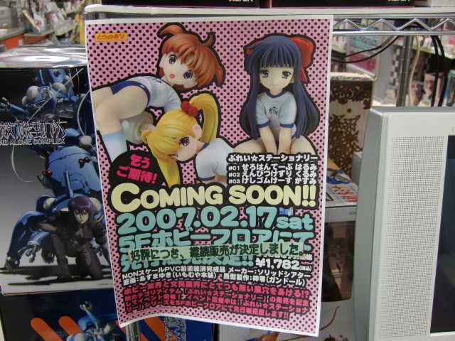 2月17日、CM音源やドラマCDなどで「#01 はるみ」(AA)の声を担当されている、榊原ゆいさんによる商品お渡し&握手会が行われる「ぷれい☆ステーショナリーシリーズ発売記念イベント」が行われたとらのあな本店にて、ソリッドシアター「ぷれい☆ステーショナリー」の#01 はるみ(AA)、#02 くるみ(AA)、#03 かすみ(AA)(参考レビュー)3種の先行販売が開始していました。