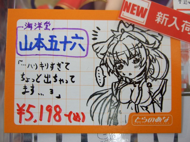 2月19日、海洋堂MON-SIEUR BOME COLLECTION NO. 19 鬼畜王ランス 山本五十六」(AA)が発売されました。これは、海洋堂ホビーロビーにて、サンプルレを撮らせていただいたこともある、アリスソフトのPCゲーム「鬼畜王ランス」に登場する「山本五十六」をBOME氏が乳輪ちら見せで立体化したもの。とらのPOPでは「・・・ハリキリすぎてちょっと出ちゃってます・・・ヨ」