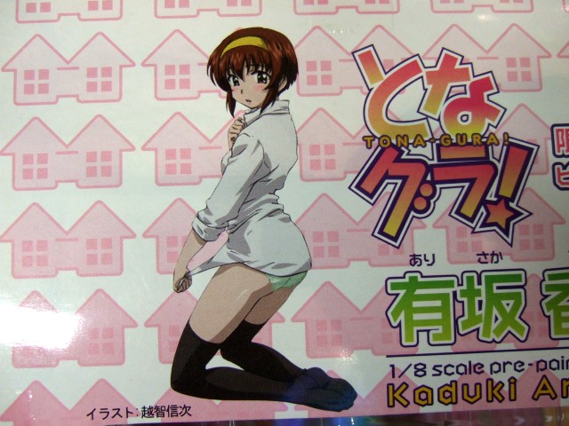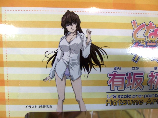 これは、暇人アニメディテーション中さんが、アニメ第1話のレビューにて、「エロい うんエロい」「なんですかこの ハ ッ テ ン 速 度!(マテ」といった感想を述べられている、「となグラ!」のヒロイン「有坂香月」を、ぱんちゅ一枚にワイシャツ羽織ったのみという姿で立体化したもので、あみあみの商品説明によると「おしりと胸元に日焼けあと!際立つふっくら白い肌!」と紹介されています。(となグラ! – Wikipedia)