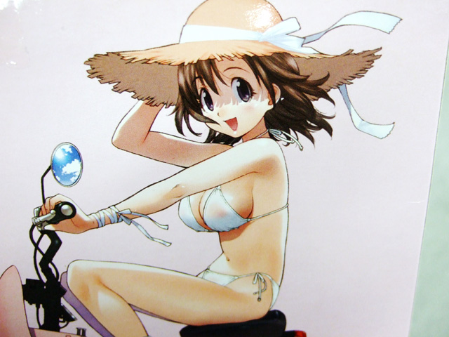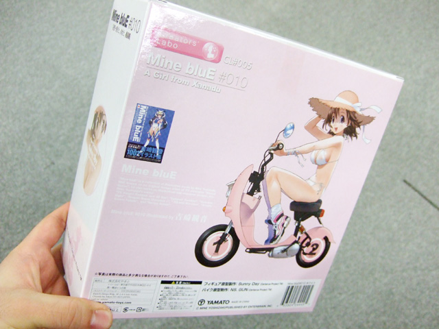 やまと CL#005 Mine bluE#010 「妄想…原付と、女の子と、桃源郷」のサンプルレビューです。やまと本社にて撮影させて頂きました!これは、2006年11月29日に発売された「Mine bluE#10 白い原付で海に向かう、青い水着の女の子」(AA)(参考レビュー)を、「妄想の中でしかありえない透け水着」に変更したカラバリで、WF2007冬で販売されるもの。乳首も見事に透けてますw