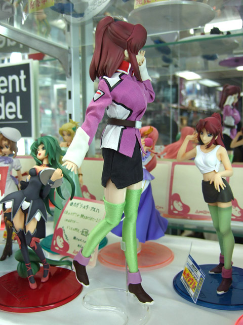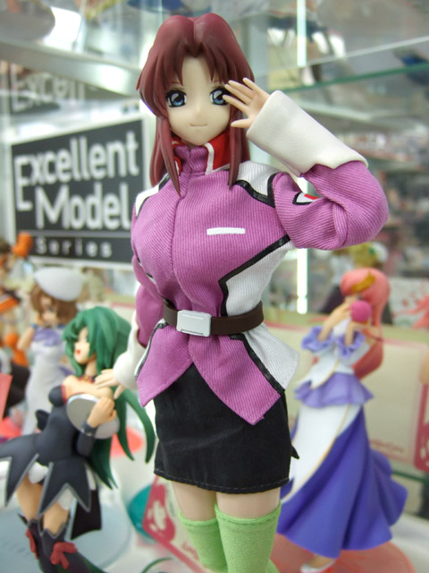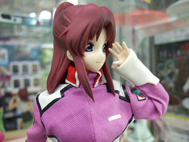 これは、宮沢模型新作展示会メガハウスブースでもサンプル展示のあった、機動戦士ガンダムSEEDの第十六話「燃える砂塵」でキラとしっぽりやっちゃってて(?)、BBNさんのレビュー記事では「そうか、あなたの仕事はキラ専用肉d(ry」とコメントされている、ヒロインの「フレイ・アルスター」をアクションフィギュアにしたもので、メガホビの商品説明によると「人気キャラクターを関節可動のアクションフィギュアとして再現した「ACTION FIGURE COLLECTION」に、『機動戦士ガンダムSEED』からフレイ・アルスターが登場。 全身30箇所の関節が動かせるボディに、劇中での制服を完全再現した衣装をセットにしての発売となる。原作のキーパーソンとも言える彼女に、あなたはどんなポーズをつけますか?」と紹介されています。