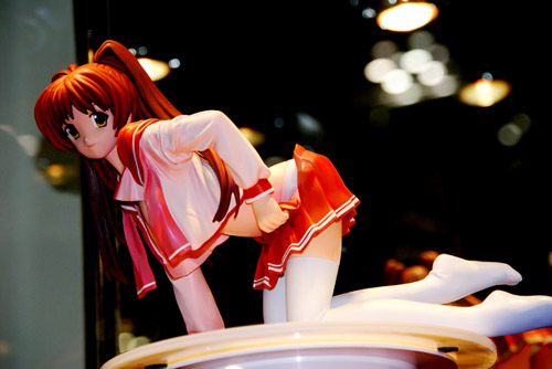 ワンダーフェスティバル2007冬の海洋堂ブースの一角にて、BOME氏と宮園博久氏のガレキ作品の展示、販売が行われていました。BOME氏のものはやはり、BOMEサイズとも呼ばれている、1/4前後の大きなサイズのものとなっていました。中でも制服脱ぎかけて乳見えちゃってるタマ姉がかなりの迫力!w ということで、そのタマ姉やハルヒなどの作品群をお伝えします。