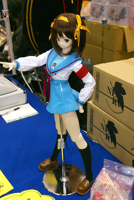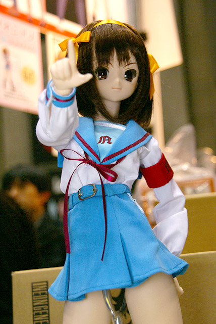 ボークス「ドルフィードリーム(DD) 涼宮ハルヒ」のサンプルレビューです。ワンフェス2007冬のボークスブースにて撮影させて頂きました!これは、3月18日に開催される、「HTドルパ大阪3」と、そのアフターイベントでの限定販売品となるもの。流石ボークスのDDというしかない、見事なまでのウィッグ(かつら)の完成度は本当にすばらしいです。制服もすごいフィット感ですよ!