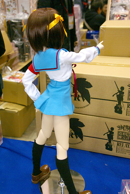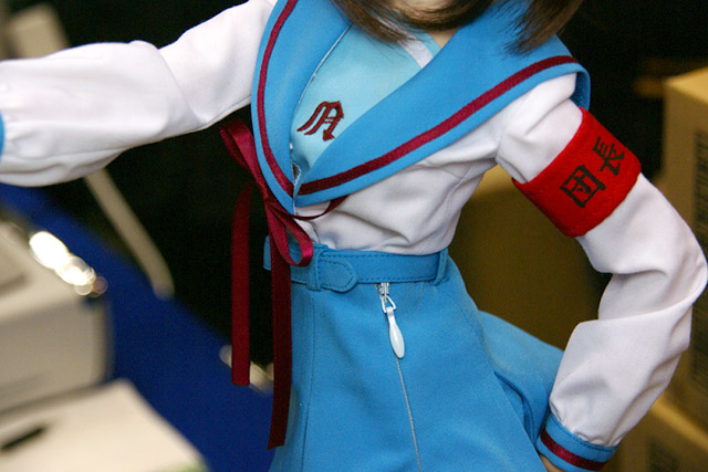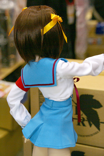 | 解説 | ヘッドは瞳にアニメティックアイズ「涼宮ハルヒ」オリジナル光彩・メタリック・20mm Chara-Eye採用のオリジナルのもの。ウィッグもオリジナル。ボディはDDベースボディII ノーマル肌、M胸採。 ドール本体のほか、ウィッグ、制服、スカート、腕章(2種)、ハイソックス、ショーツ、ローファー付属。 |
