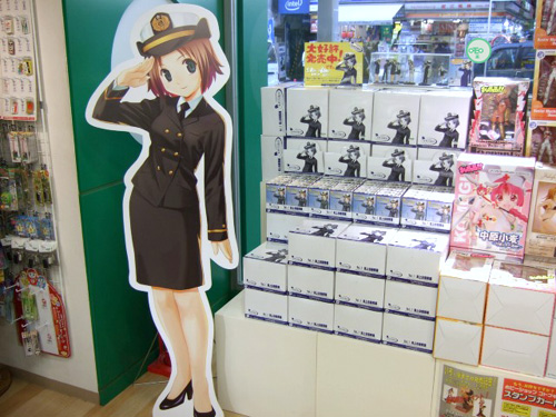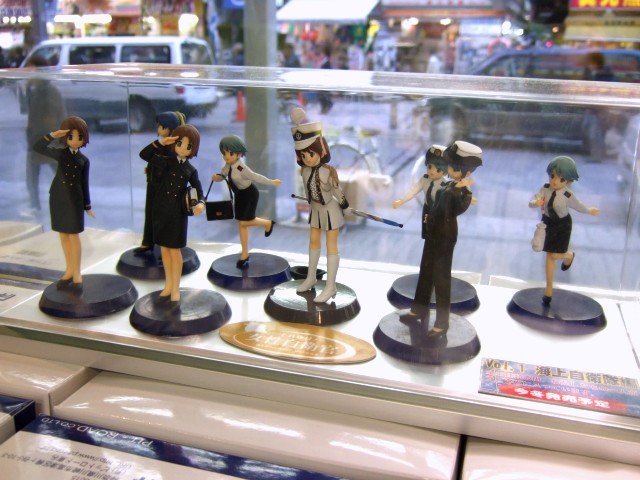 こちらはコトブキヤ秋葉原店での、日向ちはや(ひなた ちはや)一等海士、長門佳乃(ながと よしの)二等海曹、鹿島あさひ(かしま あさひ)三等海尉(帽子別パーツ版)のサンプル展示の様子。
