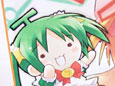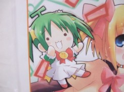 今月のテレカの絵柄の作画は、「もはや知らないやつはモグリだぜ!」ともされていた、「涼宮ハルヒの憂鬱」の「鶴屋さん」をちっちゃくしてあみだされたキャラ「ちゅるやさん」の生みの親である、うつらうららかえれっと氏が担当された、れもんちゃんとめろんちゃんのイラスト。