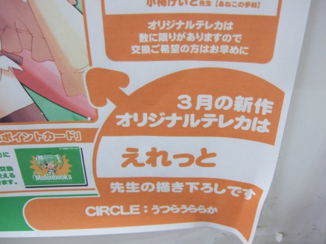 以前、「乳首勃起」「金棒股間押し当て」の交換テレカもお伝えしたことのある、メロンブックスの3月ポイント交換テレカ絵柄が店頭で公開されていました。