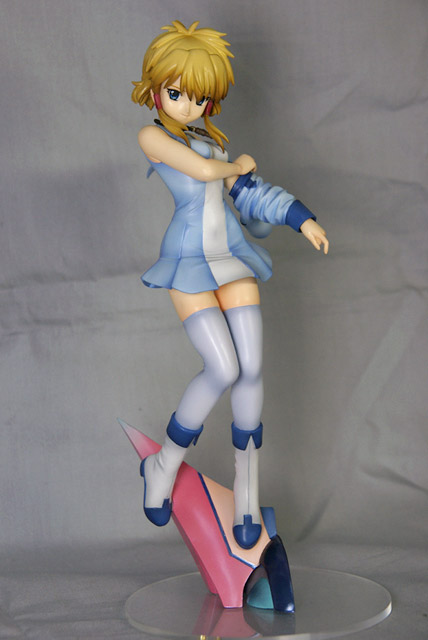 展示POPによると「WOWOWで放送され、DVDも好評発売中の、SFアニメ『奏光のストレイン』!兄の裏切りによって、笑顔を封印してしまった主人公セーラ。運命に挑戦するかの様な表情で『意思』を感じさせる造形に気を使っています。」と紹介されています。