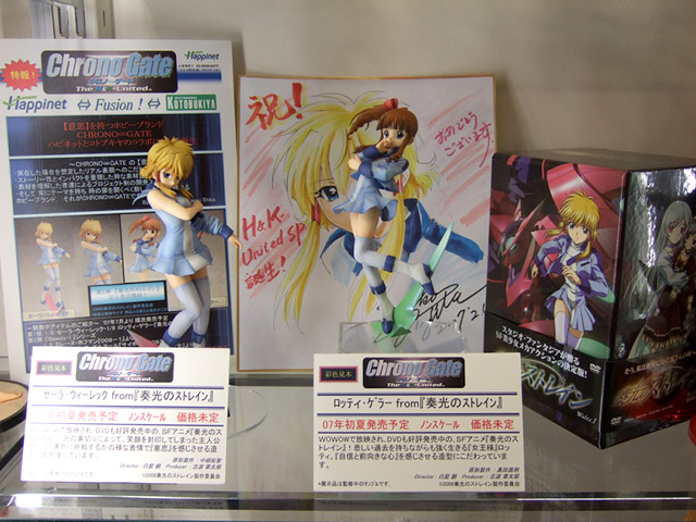 ワンフェス2007冬のメハピネットロビンブースに展示されていた、ハピネットロビンとコトブキヤのコラボブランド「CHRONO∞GATE(クロノゲート)」第1弾となる、奏光のストレイン「セーラ・ウィーレック」と「ロッティ・ゲラー」2種のサンプル展示がコトブキヤラジオ会館にて開始しています。今回、ハピネットロビンさんのご好意により、展示直前のサンプルを撮影させて頂きました!