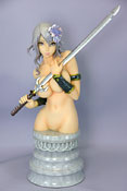 コトブキヤ「しおん」のレビューです。これは、ワンダーフェスティバル2007冬のコトブキヤブースで300個限定販売された、コトブキヤの山下しゅんや氏イラスト立体化フィギュア第2弾となるもの。材質はPVCではなく、ポリストーン完成品の半身像となっています。もちろん裸に剣を持っているという、ギリギリズムもさることながら、ポリストーンならではの細かい造形が美しい!