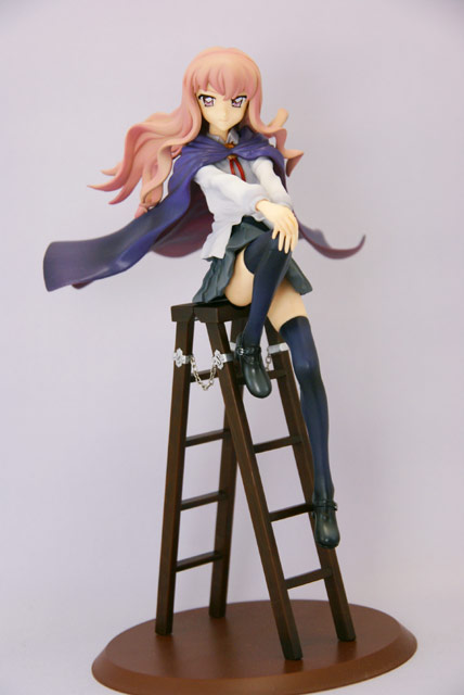 アルター 「ゼロの使い魔 ルイズ」(AA)のレビューです。コトブキヤ版(参考レビュー)は、どちらかというと小説版に近い顔だったのですが、こちらはアニメ版の方に近い顔の造形となっています。はしごにたたずむポーズもなかなか絵になっていて、フィギュア単体というより、小物を含めた全体を楽しむ物となっています。惜しむべきはやはりお尻のダボ穴ですかね・・・
