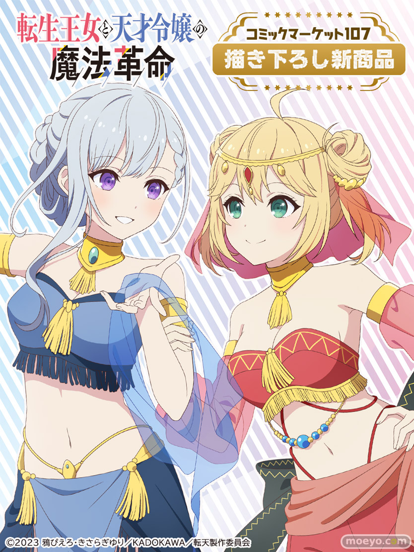 「転生」×「天才」魔法ファンタジー「転生王女と天才令嬢の魔法革命」より「アニス」「ユフィ」の新グッズ登場!見つめ合っている!?2人の踊り子衣装を描き下ろししたイラスト使用いたしました!!みどびよ!オンラインショップにて予約受付中です♪【みどびよ!】