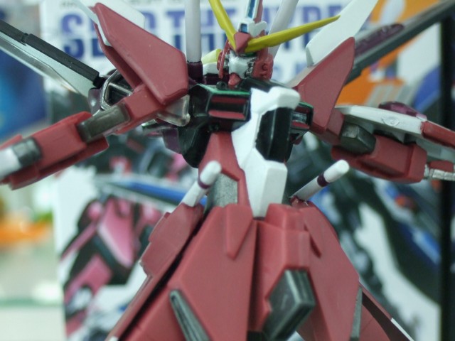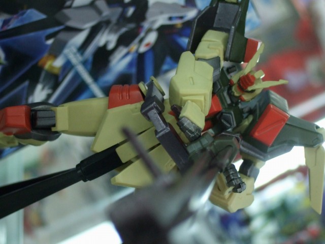これは、バンダイの商品説明で『メリハリあるアクションで、多くのファンを魅了しているTV作品「機動戦士ガンダムSEED」シリーズ。本商品では同シリーズのチーフメカ作画監督「重田智」氏と共に、その劇中の躍動感を徹底再現!まさにSEEDモビルスーツの決定版とも言える、新しいポージングフィギュアシリーズです!』と紹介されていた「機動戦士ガンダムSEED STYLING-S」(RA)(サンプル展示)と同様に、チーフメカ作画監督「重田智」氏が協力されている、バンダイの商品説明によると「ガンダムSEED DESTINY の劇中イメージを再現した大型ディスプレイモデルが登場!」と紹介されているもの。
