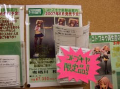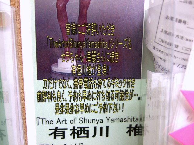 以前、ワンフェス2007冬開催前日に会場でサンプルレビューを撮影させて頂いたことのある、コトブキヤ限定「有栖川 椎」(RA)ですが、コトブキヤラジオ会館では、おそらくその際撮影させていただいたものと同じサンプル1点の展示が開始していました。
