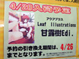■ 乳首浮いてるメイドタマ姉が特大で掲示されていたことをお伝えしたことのある、甘露樹氏(Amrita)初の個人画集「Leaf Illustrations 甘露樹」(SA)が、ソフマップ本店4Fに発売日が掲示されていました。 それによると発売日は4月20日に決まったみたいです。100回予約せねば!w