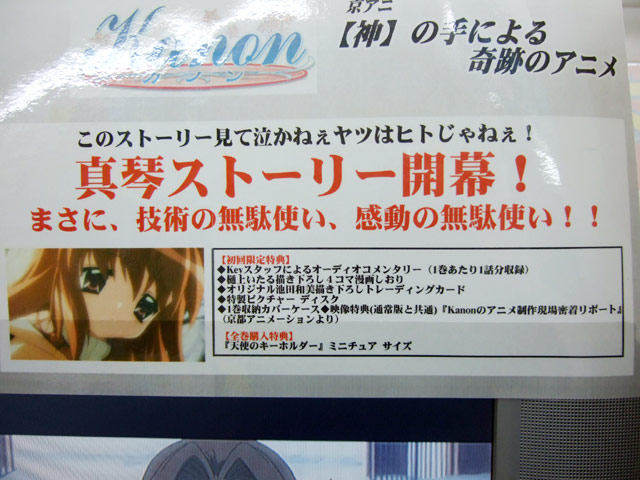 掲示されていた、DVD「Kanon 4巻」(AA)のジャケットイラスト。