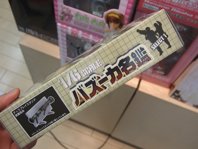 コレは、実在する、いわゆる「バズーカ」といわれる類の兵器を1/6のトレーディングフィギュアにしたもので、ザッカピー・エイ・ピーの商品説明によると「今までありそうで無かった迫力あるバズーカのフィギュアを商品化。フィギュアは専用ディスプレイ(台座)にピンで掛けられ、各ディスプレイ(台座)は連結可能なので全商品を並べて楽しむ事が可能です。全11種のフィギュアサイズは15cm〜28cmとかなり大きめで、なおかつ精巧に仕上がっています。」と紹介されています。