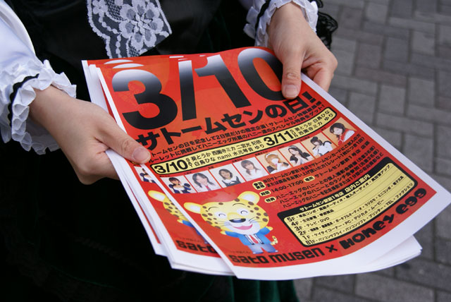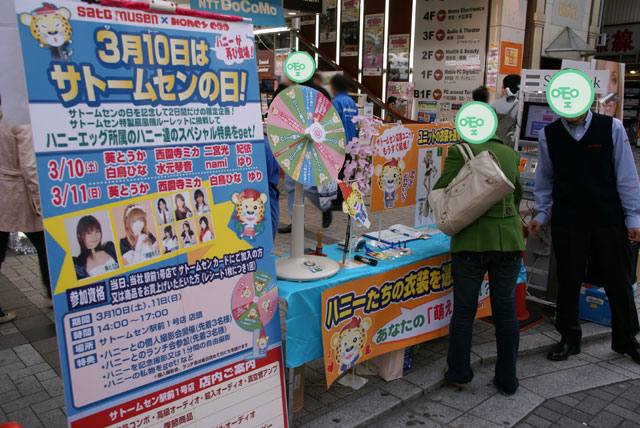 「ハニーエッグ所属のハニー達」は、おのおのコスプレをして、「3月10日はサトームセンの日」のチラシを配布していました。