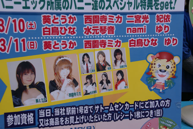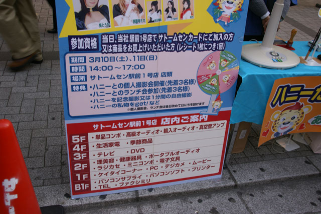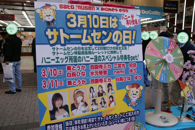 3月10日、JR秋葉原駅前のサトームセン駅前一号店の店頭にて「3月10日はサトームセンの日」として、葵とうかさんなどの、ハニーエッグ所属のハニー達のスペシャル特典をゲット!というイベントが開催されていました。