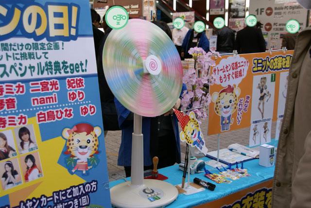 POPによると、「サトームセン特製扇風機ルーレット(回すとこんな感じ)に挑戦してハニーエッグ所属のハニー達のスペシャル特典をget!」というイベントみたいです。